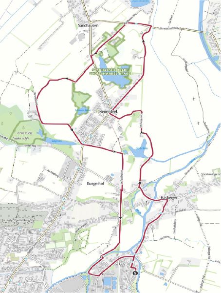 Schafkoven-Hasbergen-Deichhausen-Horst-Heide-Bungerhof-Schafkoven. |