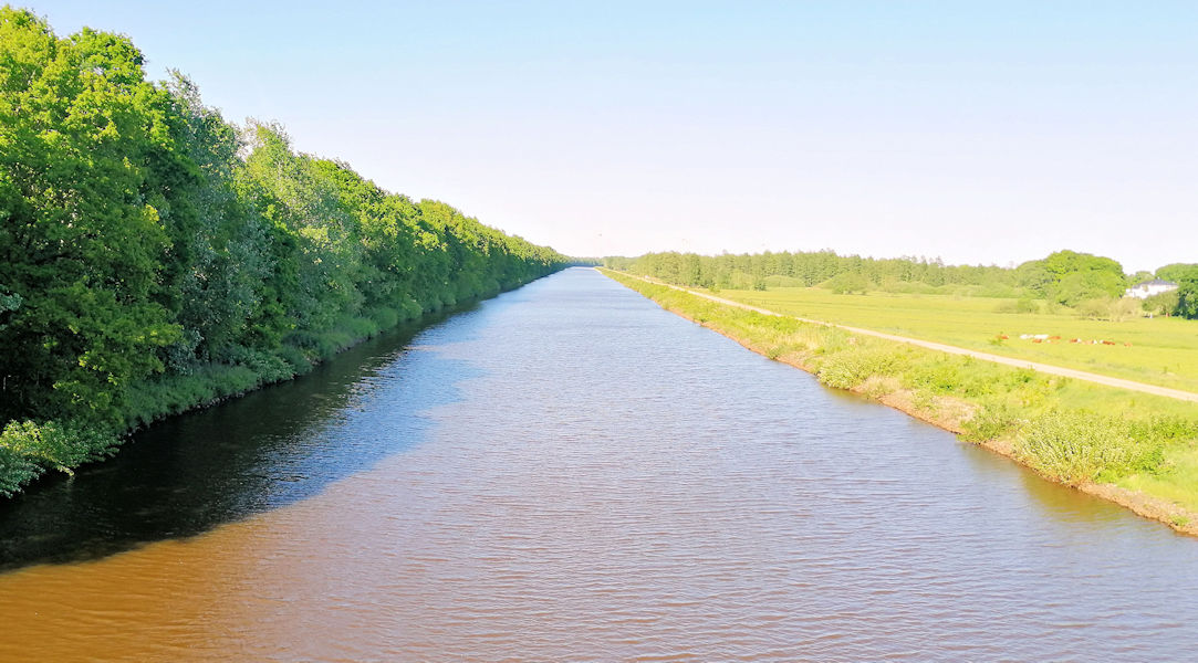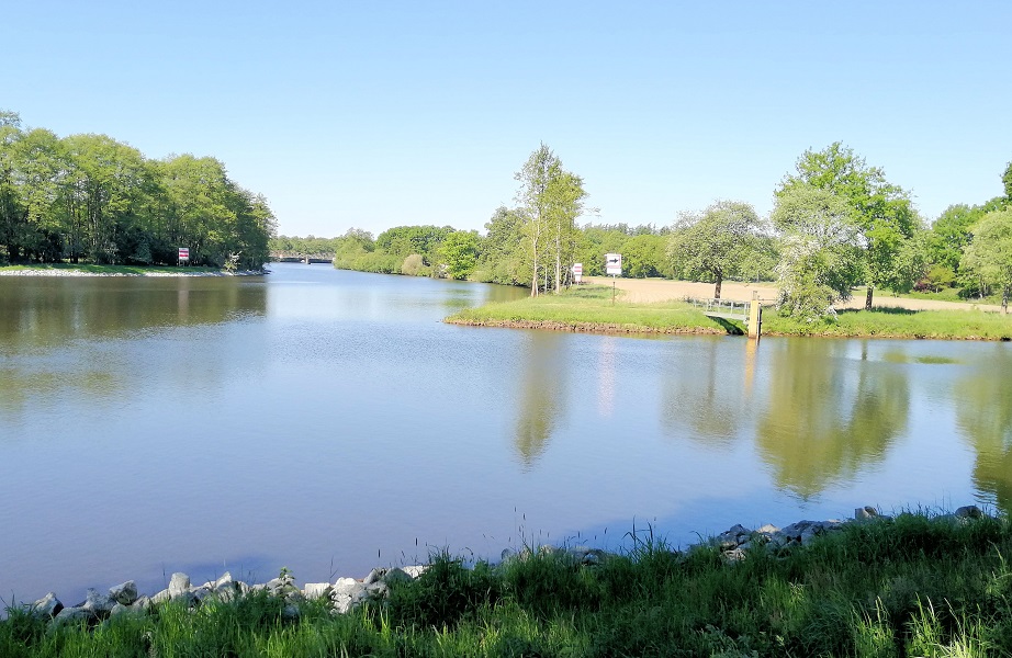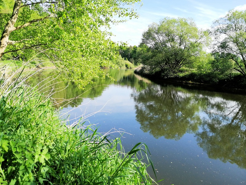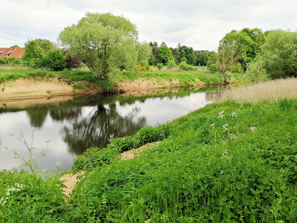 Sie fließt träge, ohne Strömung, in rechts-links Bögen durchs Land. Vieleicht