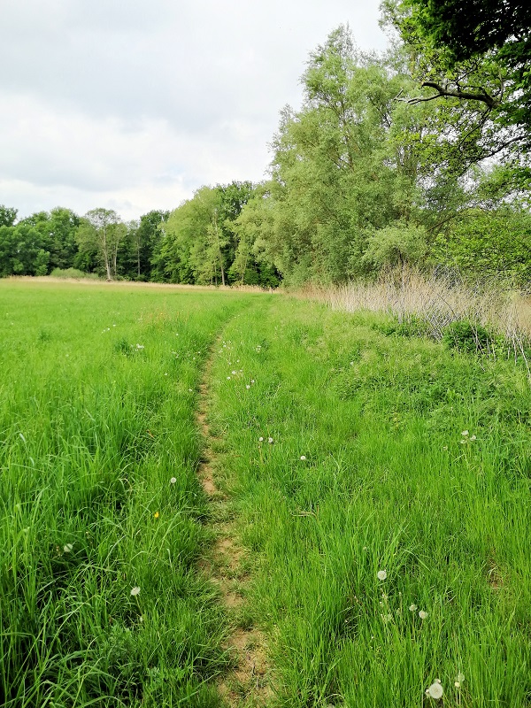 7 km wandern durch Feld, Wald und Areal mit großen modernen