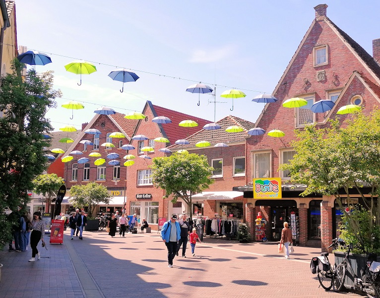 mit 25 cm breite und durch die Fußgängerzone von Leer. Die