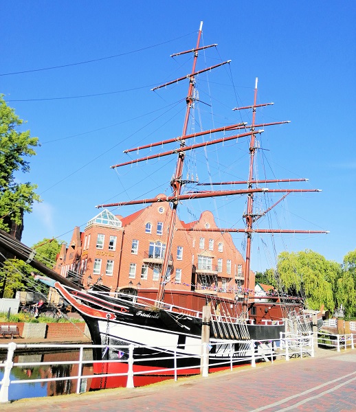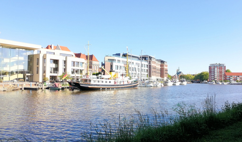 und kostet 99 € mit Frühstück. Auf der Ems ist wenig Schiffsverkehr. Heute waren