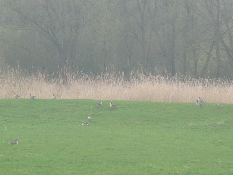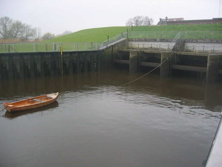 08.04.2010--ca. 22 km. Von Berne, über Elsfleth nach Brake. Per Zug (5 € ) ab Delmenhorst bin ich um 9.35 in Berne. Die kleine Stadt liegt mitten im "Stedinger Land", beidseitig des Baches "Ollen" und am "Weser-Radweg". Der schöne, kleine Markplatz mit der alten Kirche ist nur einen Steinwurf vom Bahnhof entfernt. Lohnenswert ist ein Gang in und um die Kirche. Ein Abstecher zur Storchenstation ist möglich. Die weitere Wegstrecke geht über die Ollen-Brücke längs der "Weserstrasse". Nach ca. 20 Min. kommt das Ortsschild "Ranzenbüttel" und das Radwegschild nach Elsfleth ( 9,2 km. ). Auf dieser wenig befahrenen Strasse bis "Bettingbühren", "Dreisielen", "Werderhöhle", bis zum großen Bauernhof ( Einzelhof und Strassen-Ende ) in "Wehrder". Durch das feuchte Nebelwetter sind die Bilder leider nicht besonders. Hier geht rechts ein Beton-Weg weiter. An der Ecke steht ein Schild "Radweg-Elsfleth". Diesem, bogen machenden, durch die Wiesen/Felder gehenden Wirtschaftsweg, unter der Eisenbahn durch folgen, bis an den Deichfuß. Hier ist wieder ein Schild "Radweg nach Elsfleth". Ich erreiche diesen Punkt um 11.10. Ab hier hat man vier Wegemöglichkeiten. 1) Dem Rad-Schild links auf die Deichkrone folgen, nach links über die Eisenbahn-Brücke und bis Elsfleth. 2 ) Dem Weg nach rechts folgen bis zur Asphalt-Querstrasse. Rechts stehen Häuser der Ortschaft "Ohrt". 3 ) Am Rad-Schild geht man geradeaus -eventuell übers Gatter- und folgt dem Deich bis zur Strasse. 4 ) Meine Variante ist etwas länger und nur bei trockenem Wetter anzuraten. Wenn man auf der Radauffahrt ( schmaler Asphaltstreifen ) die Deichkrone - man sieht auf die "Hunte" - erreicht hat, geht man, rechts voraus, längs der Hunte auf dem Gras in Richtung der hohen Bäume. Ein Weg ist schwach erkennbar. Nach ca. 200 m. geht es nach rechts, dem Hunte-Arm folgend und einem kleinem Hopser bis auf die Asphaltstrasse. Ab hier weiter nach links, längs des Deiches, auf die Insel "Elsflether Sand". Es gibt mehrere Möglichkeiten an den Weser-Strand zu kommen. Nun sind es 3 km. bis zum "Hunte-Sperrwerk". Auf diesem Teilstück gibt es Infotafeln. Wer weiß schon das es hier "Beutel-Meisen" gibt. Ich hatte das Glück, Schwäne. Wildgänse, Störche, Rindviecher, kleine Schafe und eine schöne Segeljacht zu beobachten. Die Überquerung des Huntesperrwerks ist jede volle Stunde für Fußgänger und Radfahrer möglich. Nach Querung des Sperrwerks kann man, vor den Segelclub-Hallen und dem Clubhaus nach rechts abbiegen. Teils auf dem Deich (Tierfreunde halten kein Palaver wenn Schafe vorhanden), teils auf dem Weg, wasserseitig, folgt man der Weser - vorbei an Wochenendgrundstücken - bis nach "Oberhammelwarden". Vom Sperrwerk bis zum Campingplatz und dem Lokal mit Weserpanorama sind es ca. 3 km. Nun muss man sich für eine weiter Wegführung entscheiden. Es gibt einen Rad/Fußweg, neben der Strasse und längs des Deiches bis nach Brake. Ich habe für mich entschieden, auf der Deichkrone zu gehen. Das Übersteigen eventueller geschlossener Gatter ist leicht machbar. Teilweise sind auch Pforten vorhanden. Ab dem "Käseburger Siel" ( Entwässerungs-Anlage ) geht wasserseitig, ein Weg bis zur Werft-Spundwand. Wieder schöne Wochenendgrundstücke, Durchgänge zum Weserstrand, Sicht auf die Schifffahrt und Radarturm. 10 m. hinter der Werfteinfahrt kann man wieder auf die Deichkrone. Links sieht man eine schöne alte Kirche. Nach 150 m. ist feste Strasse und Beginn der 2 km. langen Promenade der schönen Häuser längs der Wasserfront bis zur "Kaje" der Stadt Brake. An der Kaje mit dem Fähranleger bin ich um 14.00. Lohnend sind die beiden "Schifffahrts-Museeums-Gebäude", der "Innen-Hafen", der Jachthafen, die Schleuse und eine "Fährfahrt zur Harrier Sand Insel". Auf dieser Fahrt sind die großen Silos und Hafenanlagen gut zu sehen. Mein Weg geht ab Kaje gerade aus weiter, Richtung der großen Silos, über das Schleusentor. 50 m. weiter ist mein Ziel: Das Fischgeschäft und Fischrestaurant. Ich genieße "Brathering mit Kartoffelsalat". Nach 10 min. Fußweg zum Bahnhof, bringt mich die "Nord-West-Bahn" um 16.06 für 5,75 € nach Delmenhorst. Kartenmaterial: Topographische Karte, 1 : 50.000, Nr.: L 2716, Brake ( Unterweser ) Nicht unbedingt nötig: Nr.: L 2916, Delmenhorst "Bettingbühren" ist leicht zu finden - siehe Beschreibung Zum Seitenanfang Zurück zur Wanderseite "Neue Wege gehen, Verborgenes sehen.