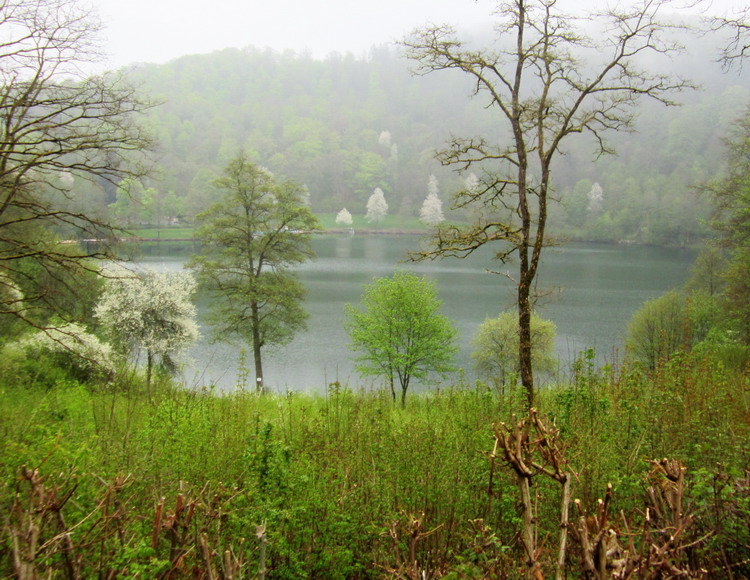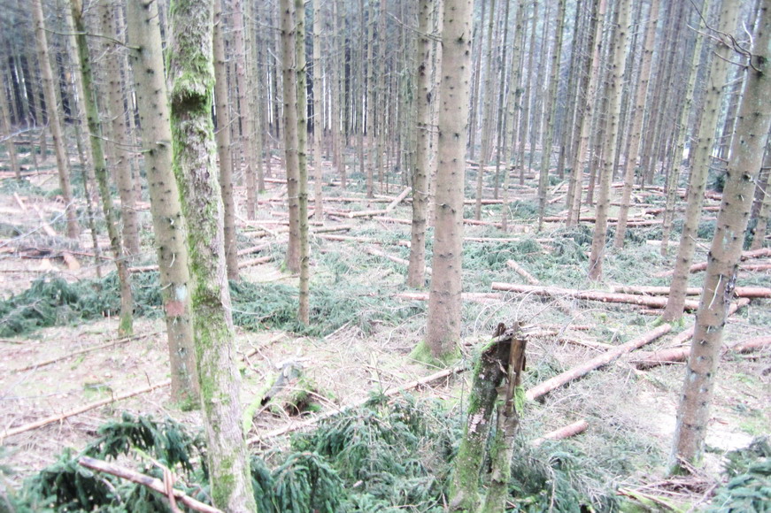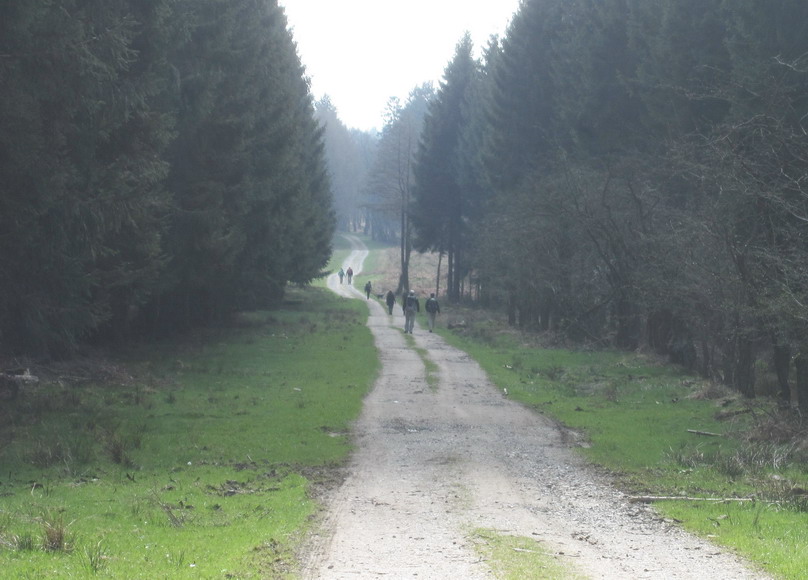 Es sind nur 150m. zum Weg. Es ist Nebel und die Wege sind nass und mattschig.