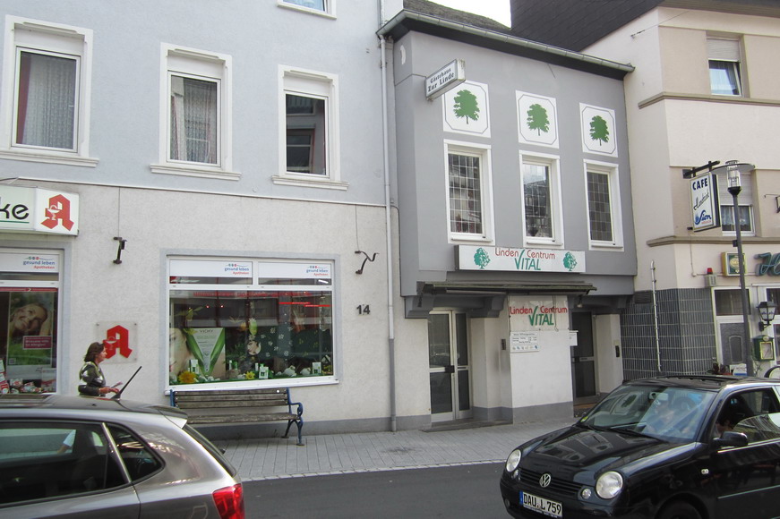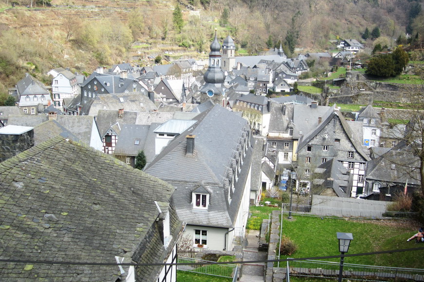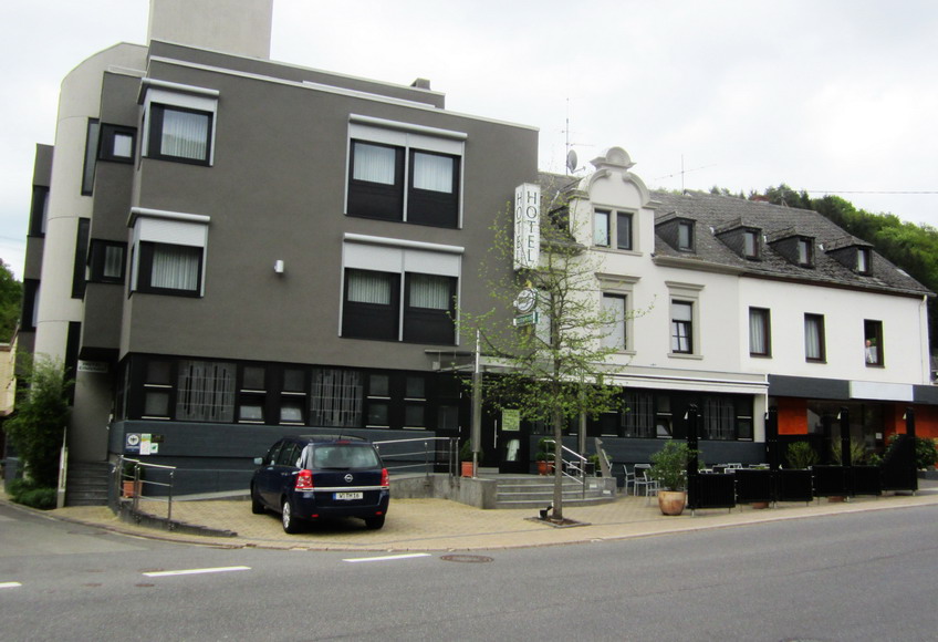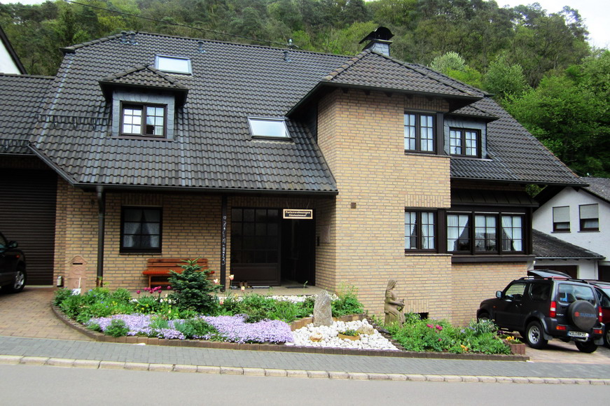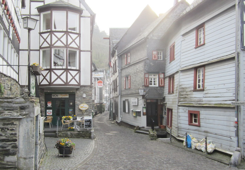 Leicht findbar: Beim "Roten Haus" in Monschau, links in die