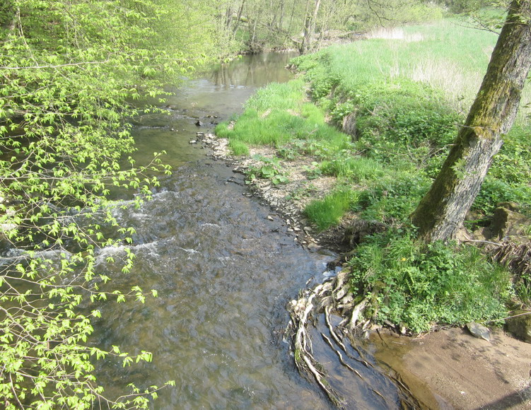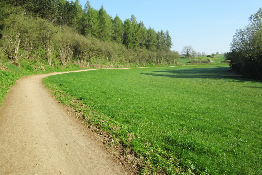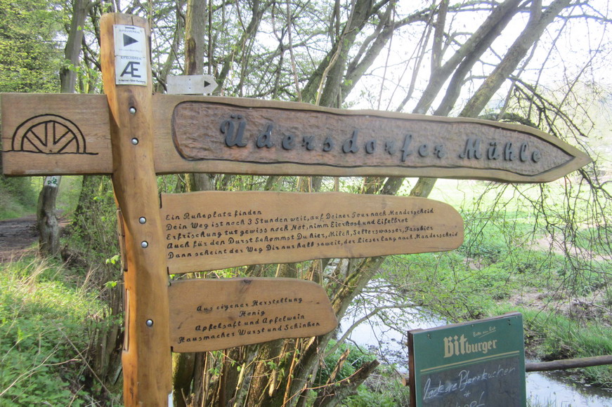 Man geht nach links, ist kurz vor der Brücke Richtung "Mirbach". Der Ort "Alendorf"
