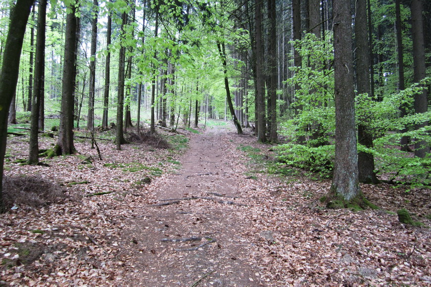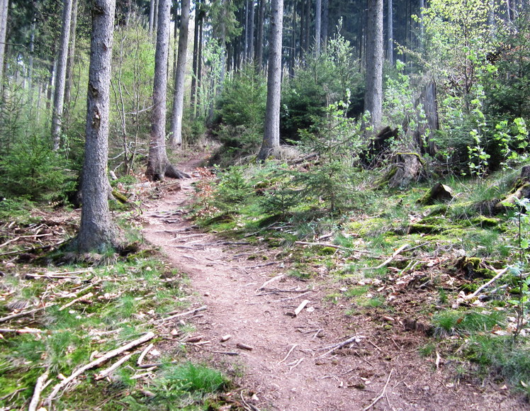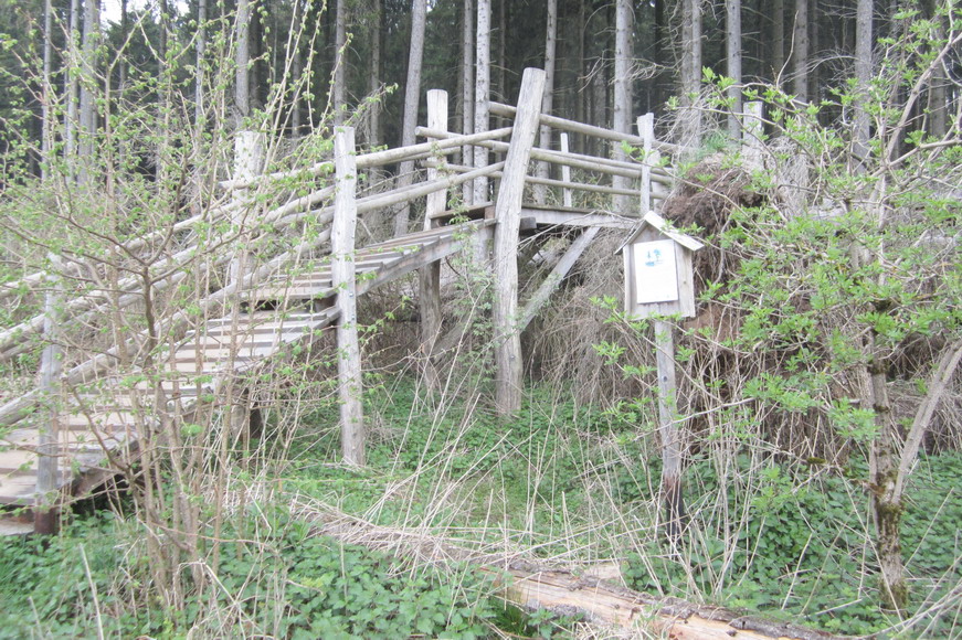 Gehen sie nicht rechts in den steilen "Baumwipfelpfad" hoch und nach 100 m.