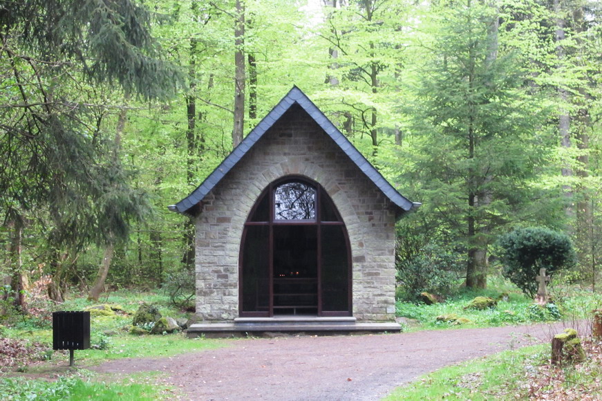 In Mirbach, unbedingt die am Weg liegende Kirchen-Kapelle, mit Mosaikarbeiten,