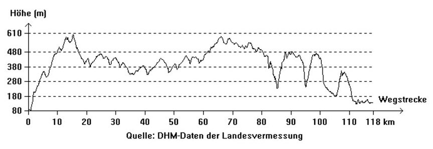 Die Strecke hält sich weitgehend an den Verlauf der historischen Römerstraße,