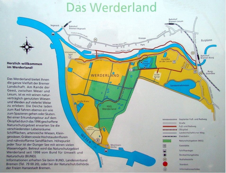 Einige Info-Tafeln erklären und die Geschichte des Werderlandes mit seinen