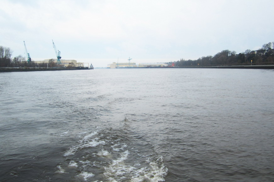 Der Tag ist klar und wir sehen auf die Weser - leider ist kein Ozeanriese in