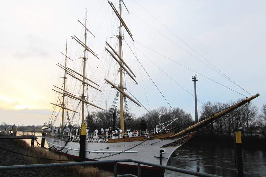 und zum Dreimast-Bark-Segelschiff-Deutschland. Der Weg führt längs schöner