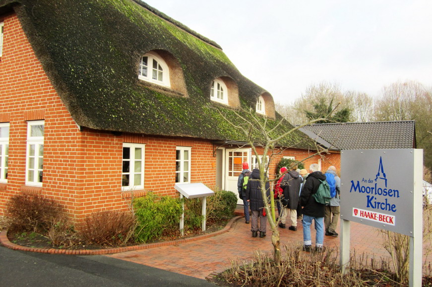 Wir haben die Kirche von Moorlosen schon in Sicht und im Lokal