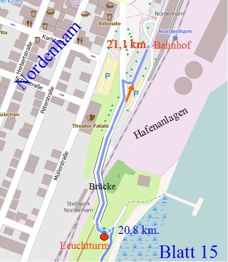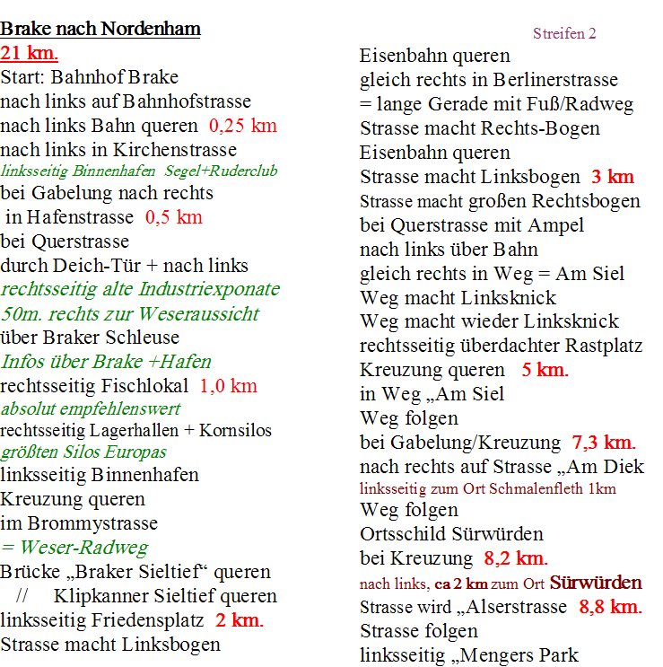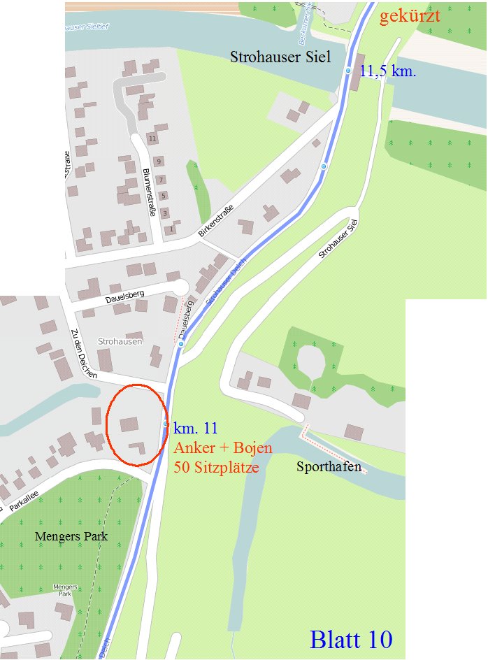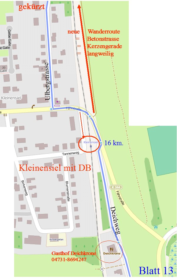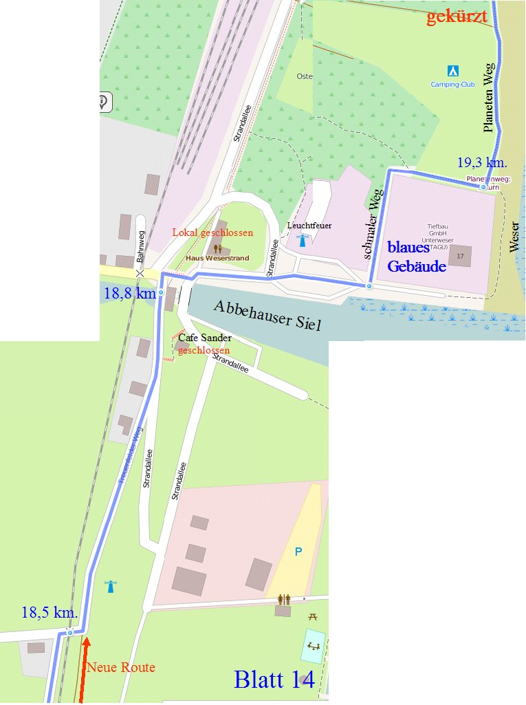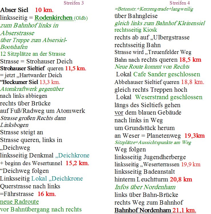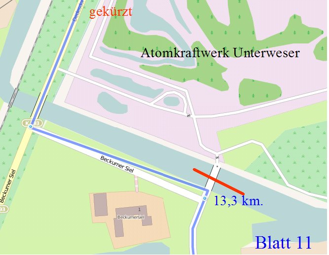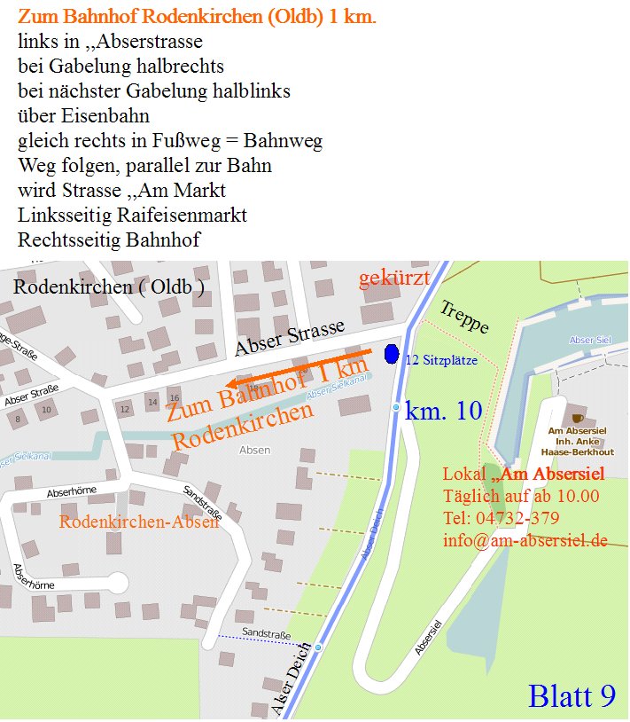 Die Etappenlänge kann bis Rodenkirchen-DB (10 + 1 km. ) oder bis Kleinensiel-DB