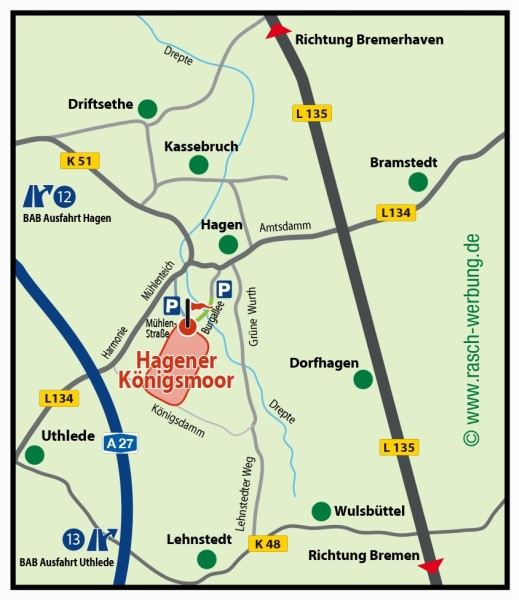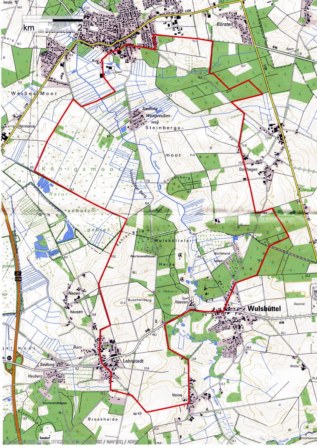 durch den Ort "Lehnstedt", durch das Örtchen "Heine", durch "Wulsbüttel"