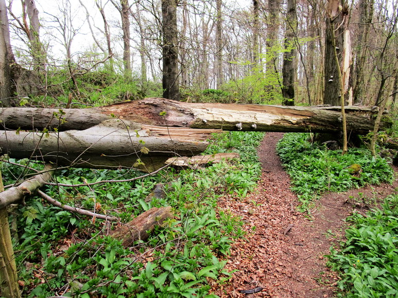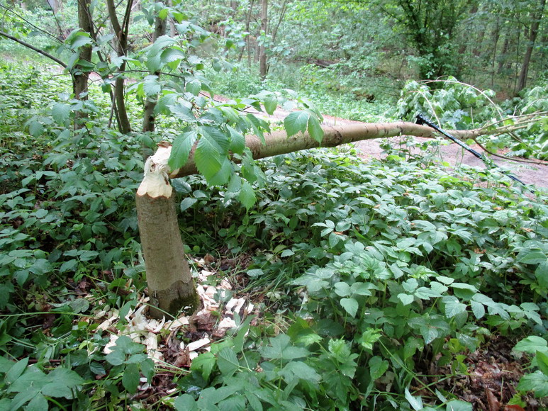 armdicke Pappel lag quer überm Weg, war gerade von einem Biber