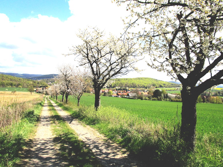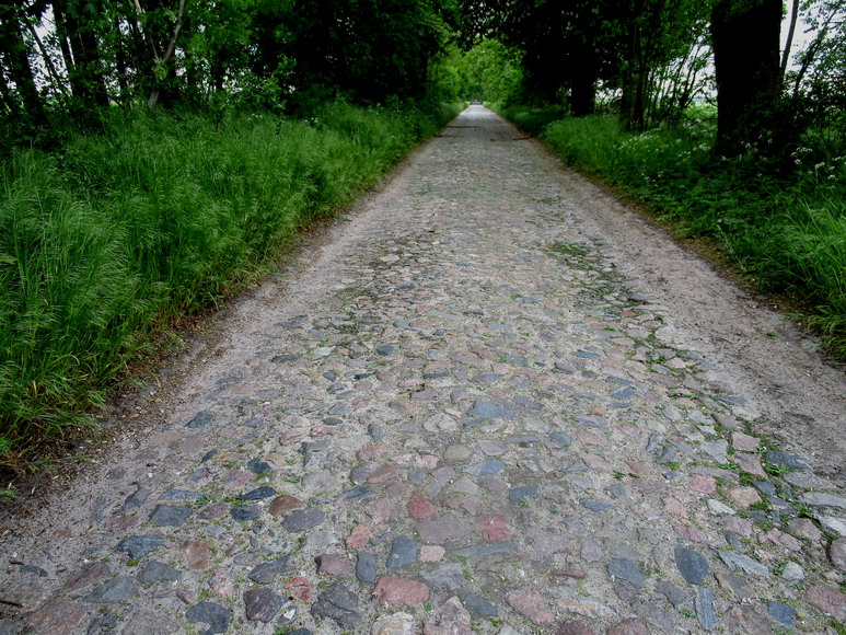 Feldstraßen, davon ein langes Stück mit argem Kopfsteinpflaster und