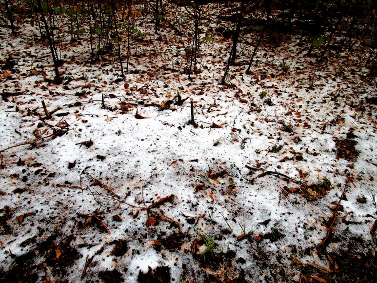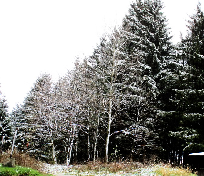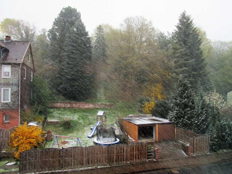 sind voll Schnee. Um 10.00 hagelt es sehr kräftig.