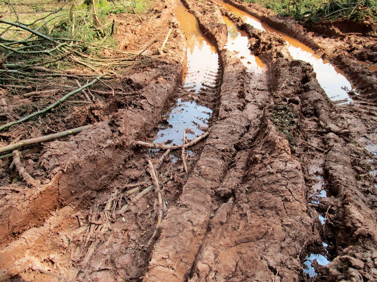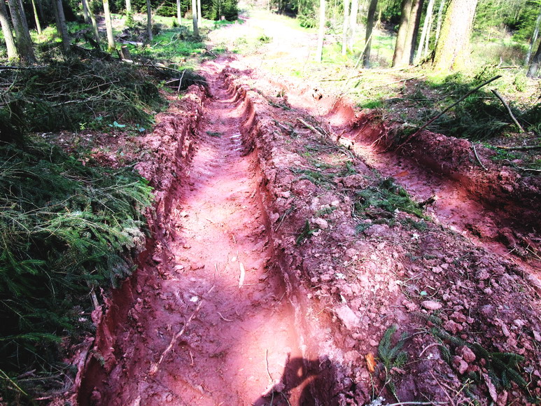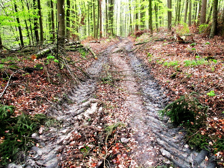 Zu sehen gibt es außer Wald mit kaputt gefahrenen Wegen und voller