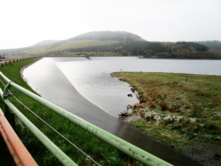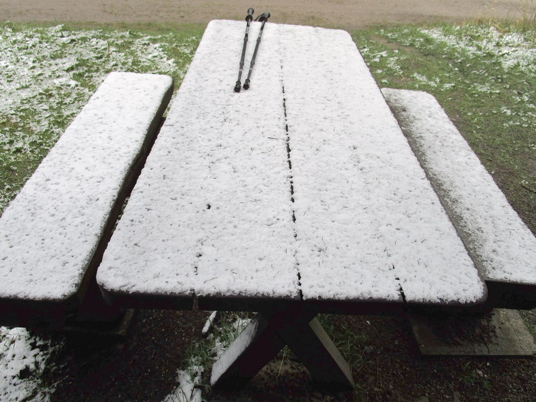 Den ganzen Tag kalt und jede Stunde ein Schneeschauer. außer dem Stausee