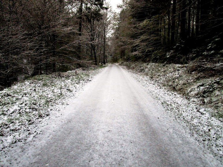 In der Nacht hat es geschneit, und das tut es auch bis Mittag. Es ist