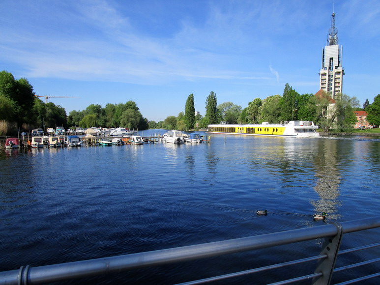 stadteinwärts. Die Route geht teilweise längs des Flußes "Spree". Heute