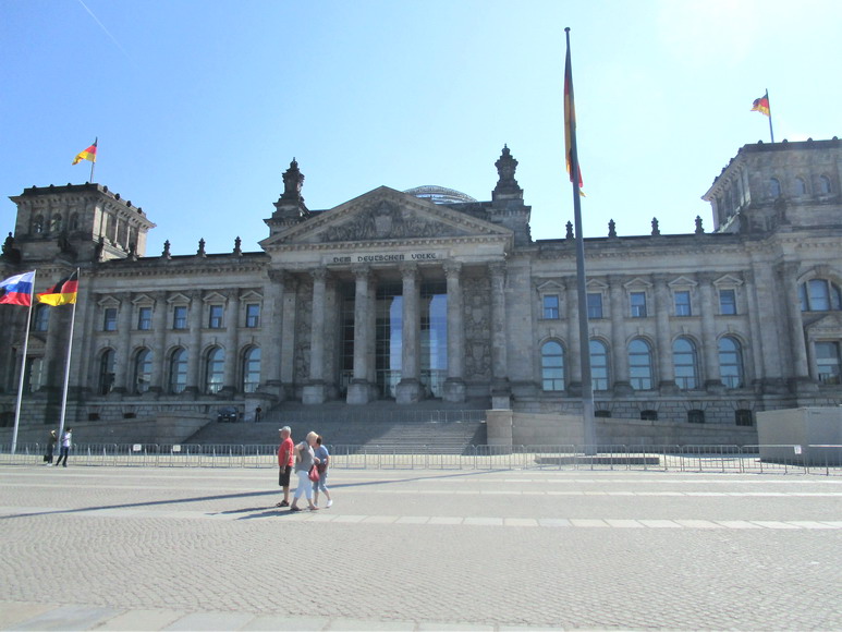 Reichstag, quere das Brandenburger Tor, bummele "Unter den Linden",