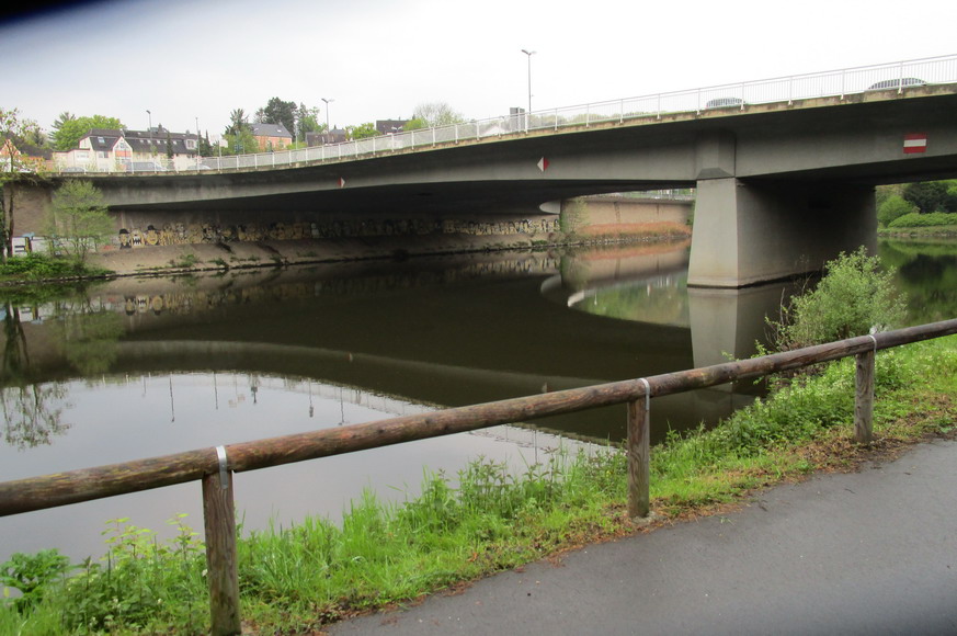 die Ruhr und geht längs der Ruhr weiter. Die alte Brücke zum