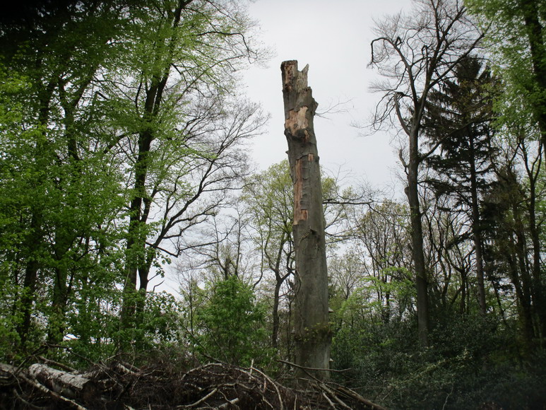 schöner neuer, breiter Waldweg durch ein Sturmschadengebiet.
