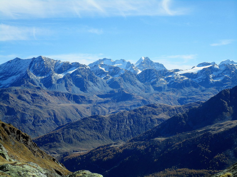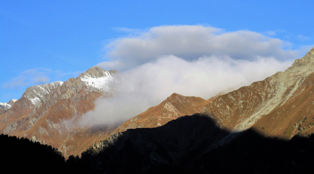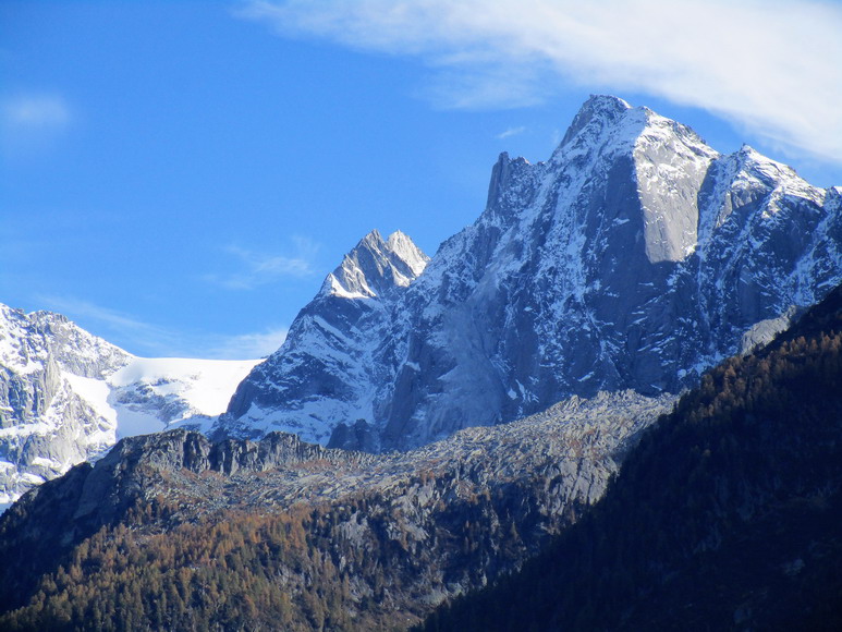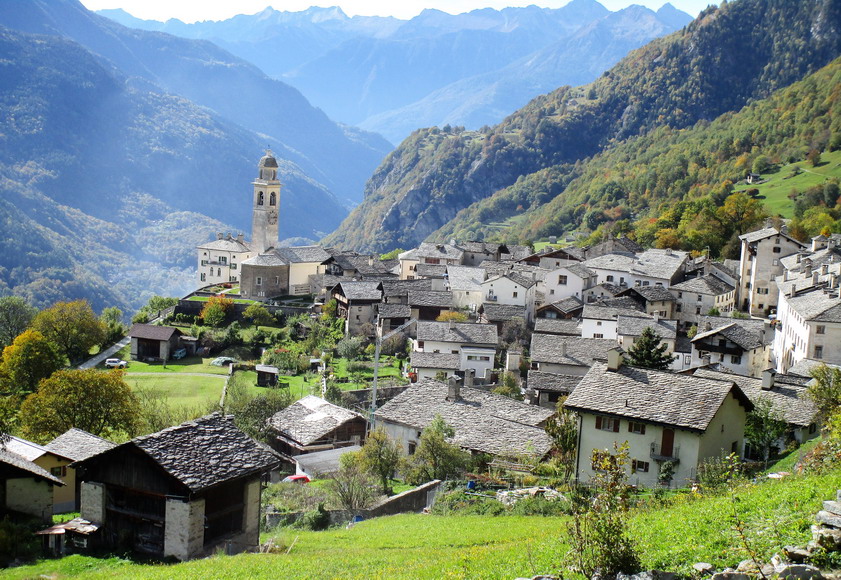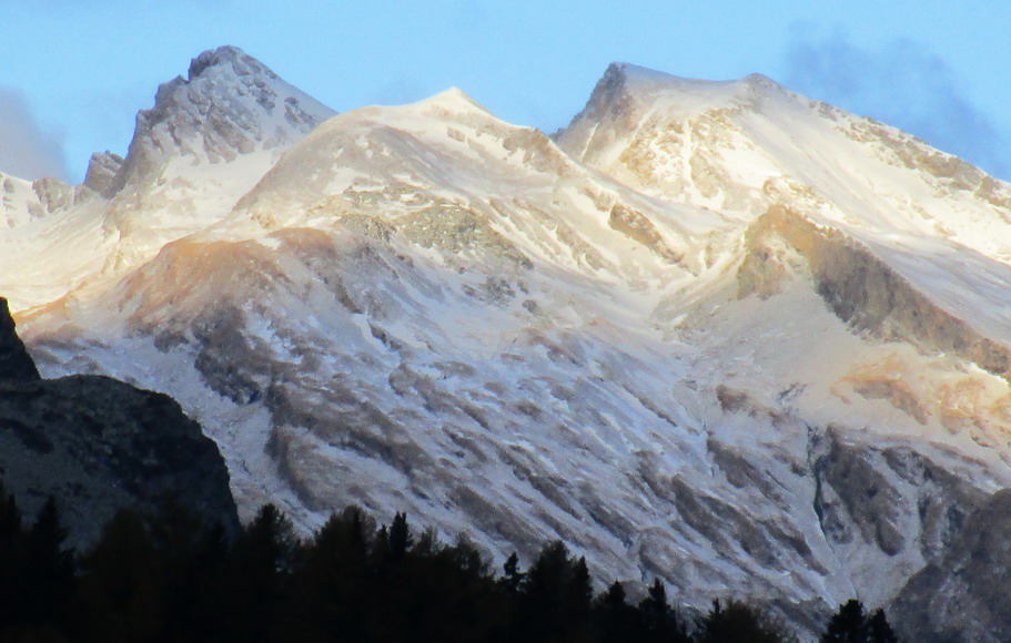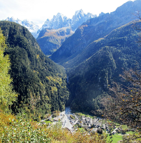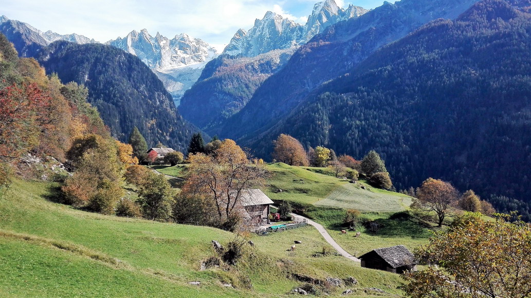 "Val Bregaglia" und die umliegenden Schneeberge.