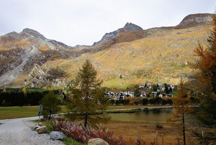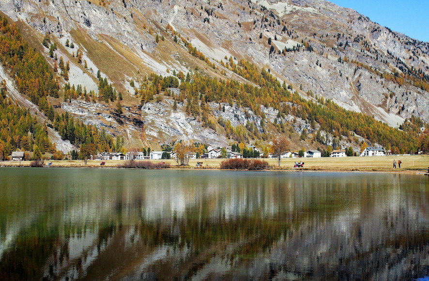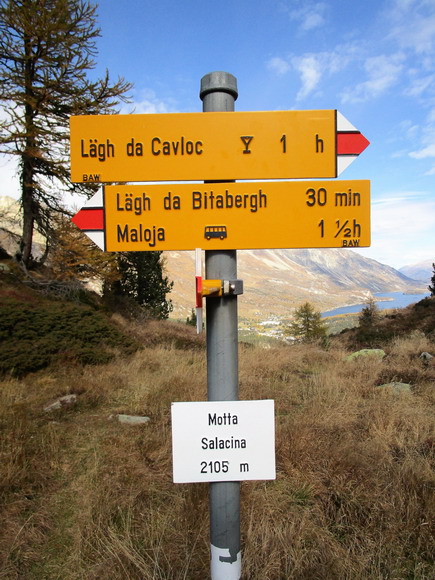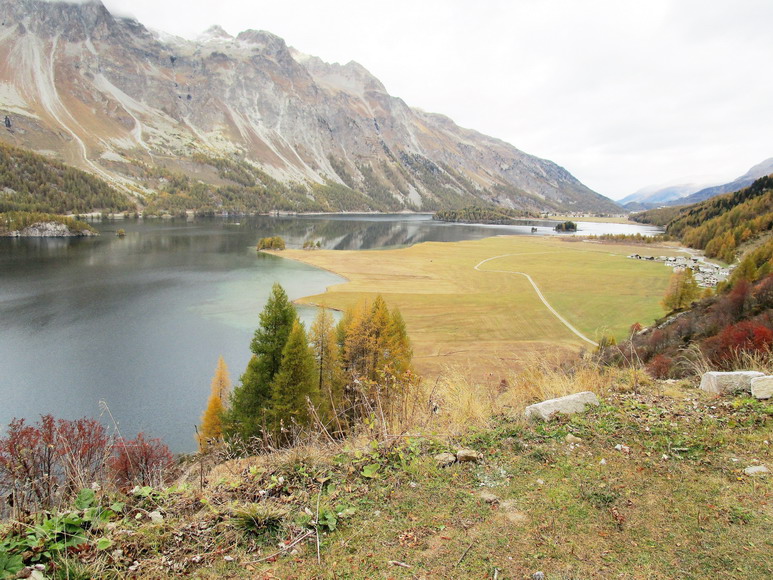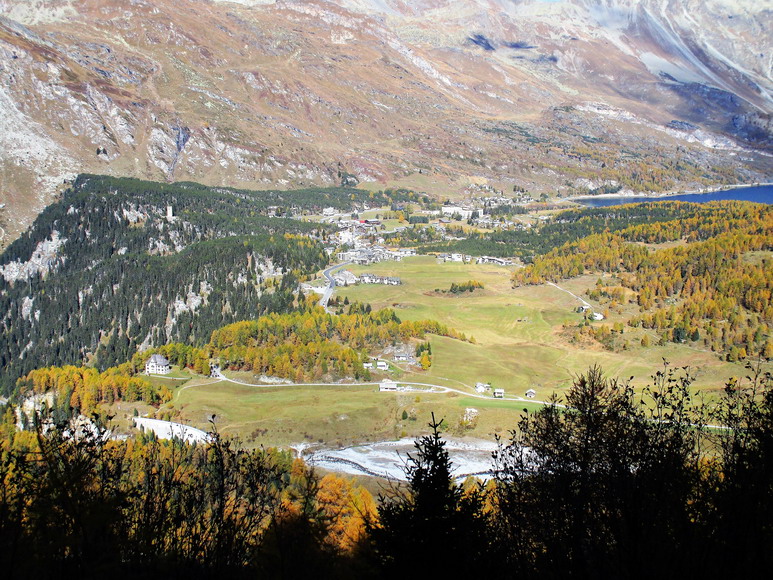 bis zur Seestraße am "Silser See" und am Ortsanfang von Maloja endet. Längs des