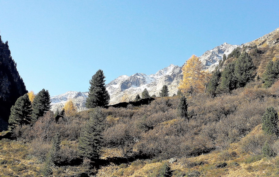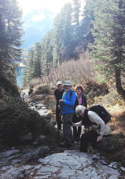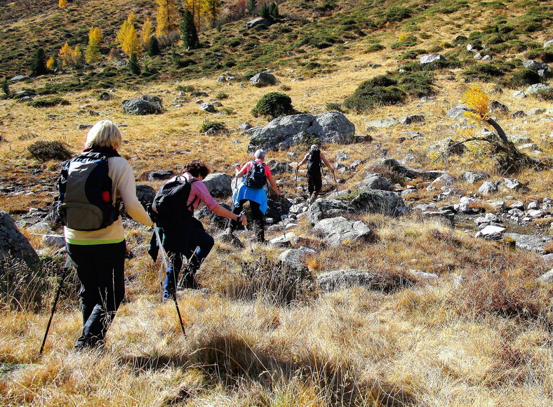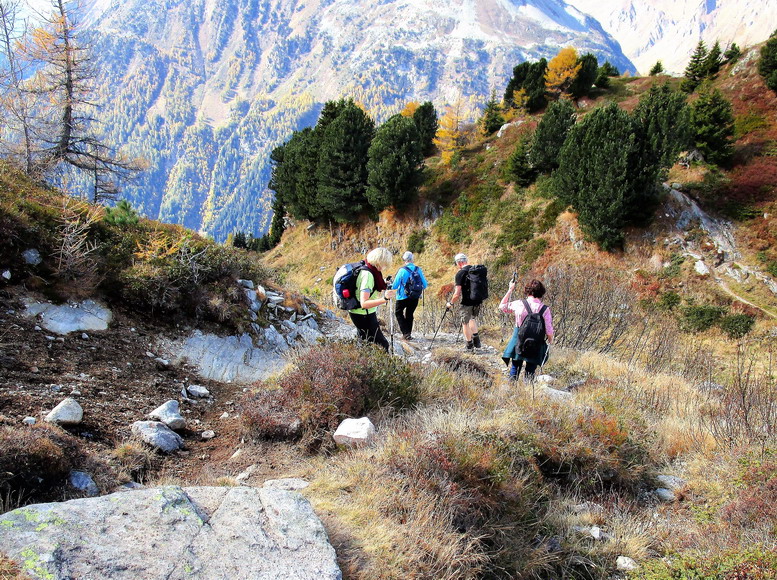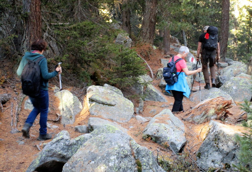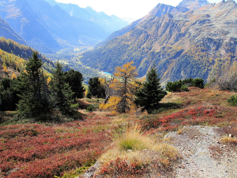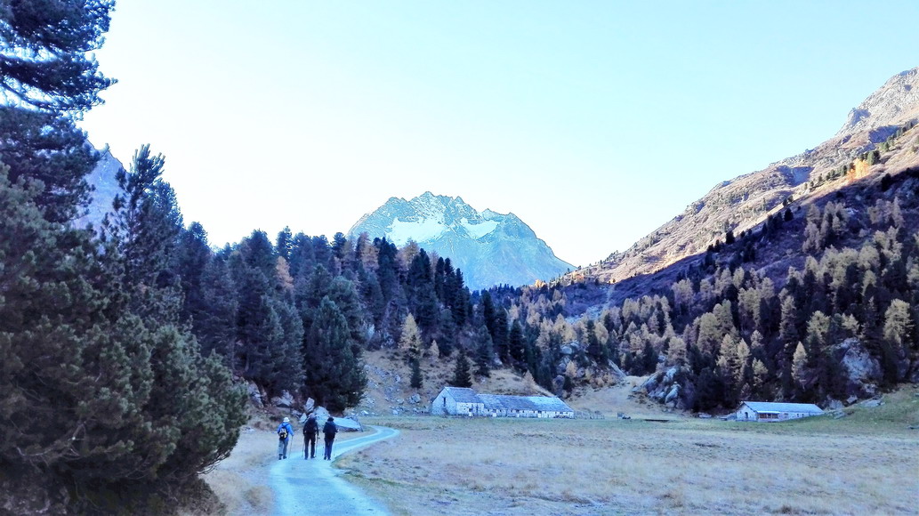 Über den Fernwanderweg "Via Engiadina" gehen wir, immer abwärts, bis "Plan di