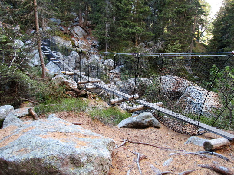 Steine und eine Hängebrücke bis zum "Orlegna-Staudamm".