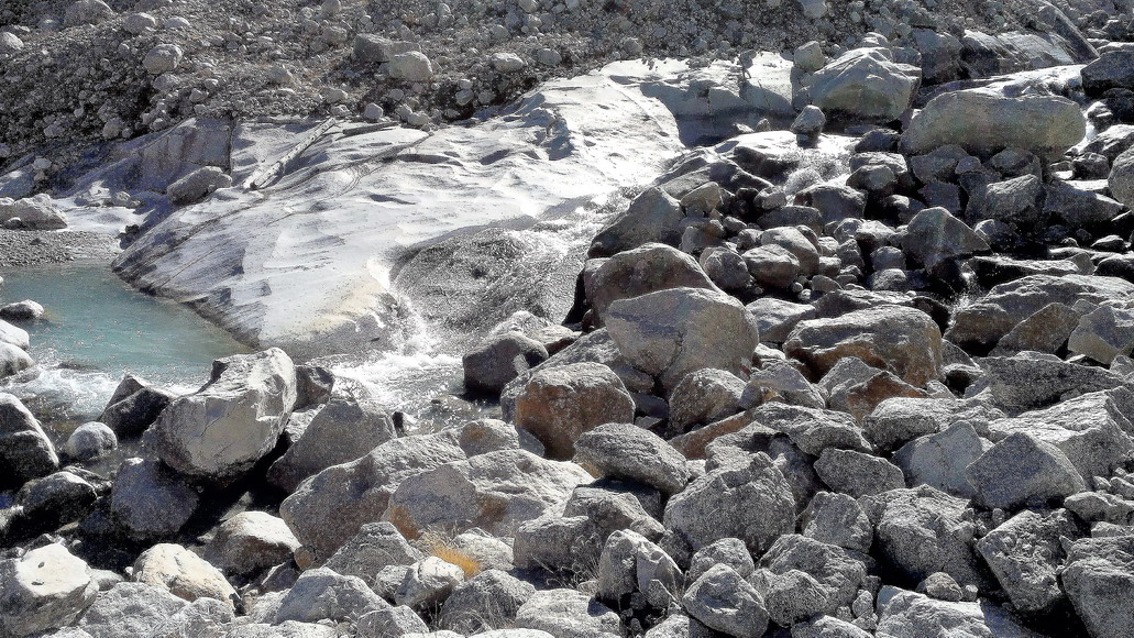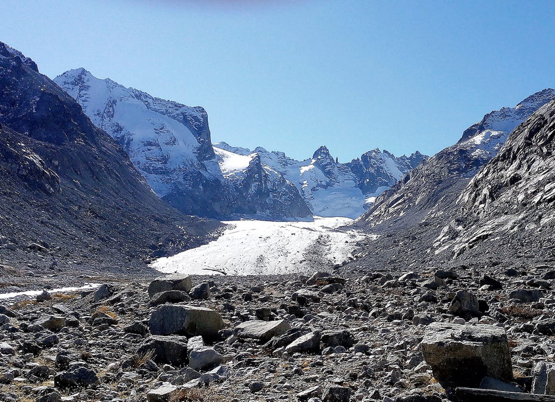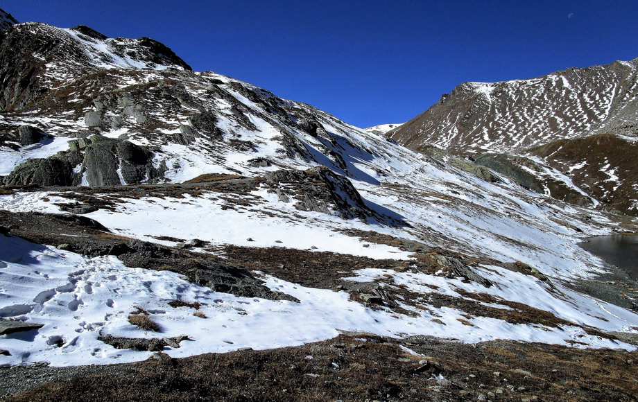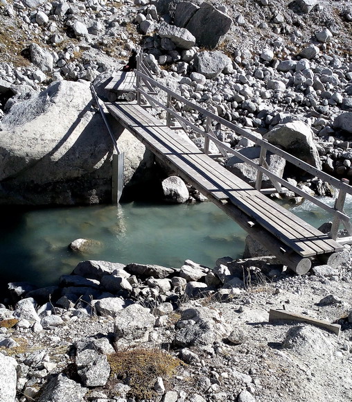 aber noch nicht den Gletscher. Wir queren den "Orlegna-Staudamm" und lassen den