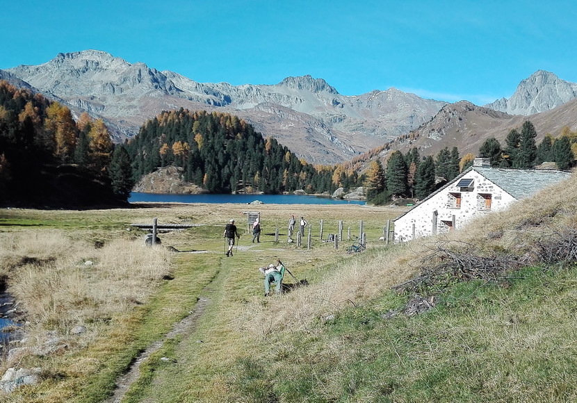 Ab der Herberge steigen wir steil auf, vorbei am See "Lagh da Cavloc", über die