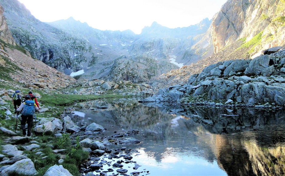 Aufsteigend, an mehren Seen vorbei, übersteigen wir die Passhöhe "Baisse