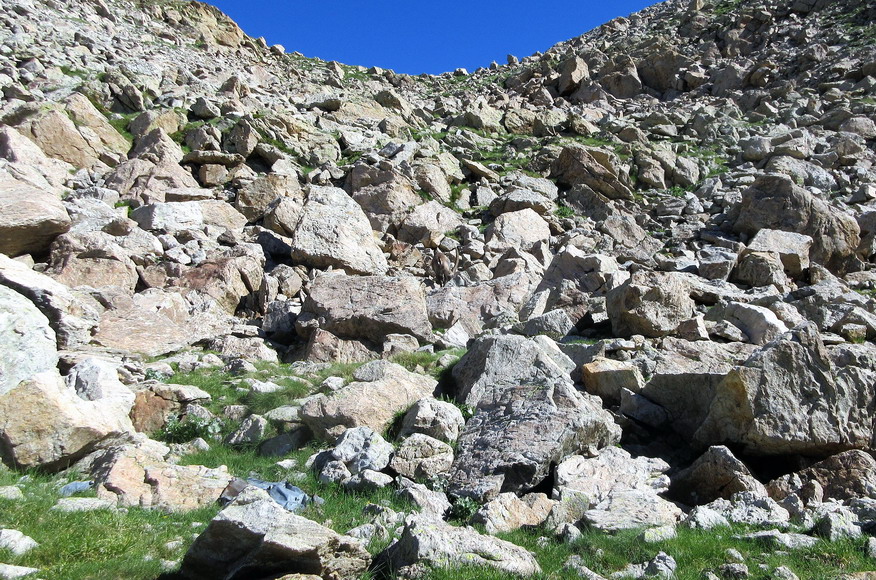 und Schrottgeräte. Aufwärts, immer aufwärts bis "Baisse de la Dea 1750m." und