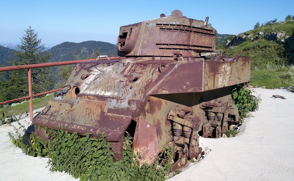 begleiteten uns viele Kriegs-Betonbau-Ruinen mit altem verrostetem Kriegsgerät.
