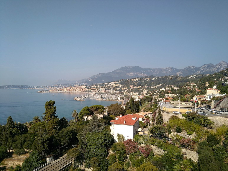 überfüllte, stickendheiße Bus bringt uns nach Menton.