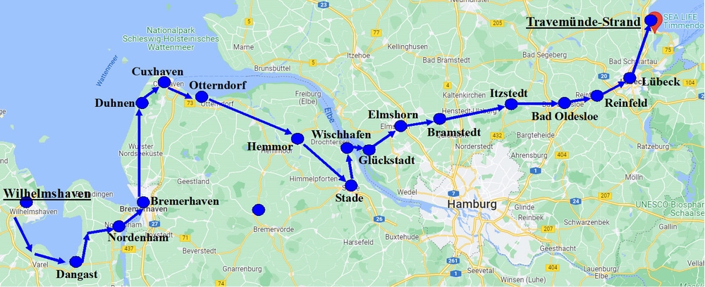 Wilhelmshaven-Dangast-Nordenham-Bremerhaven-Duhnen-Cuxhaven-Otterndorf-Hemmoor-Stade-Wischhafen-Glückstadt-