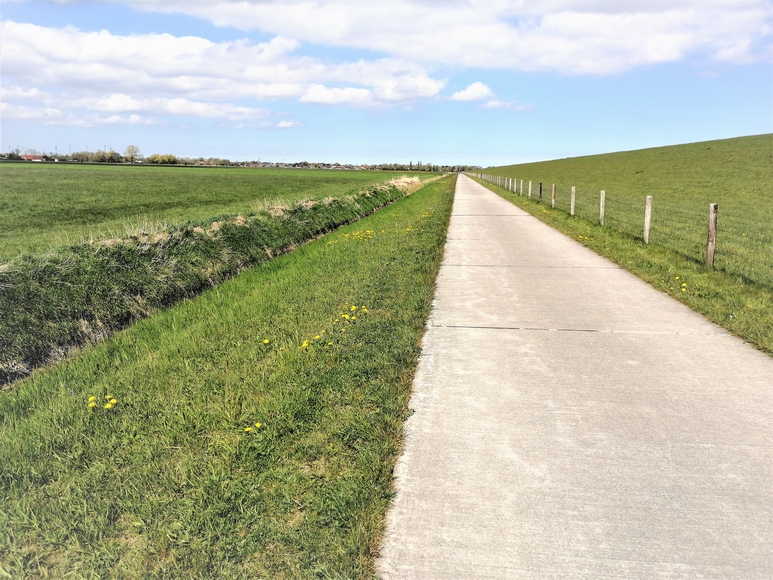 Auf dem "Butjadinger Weg" bis "Augusthausen". Die Strecke ist eintönig, nur auf
