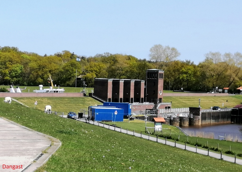 der Deichstraße. Es geht vorbei an der "Varel-Schleuse"