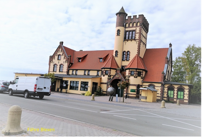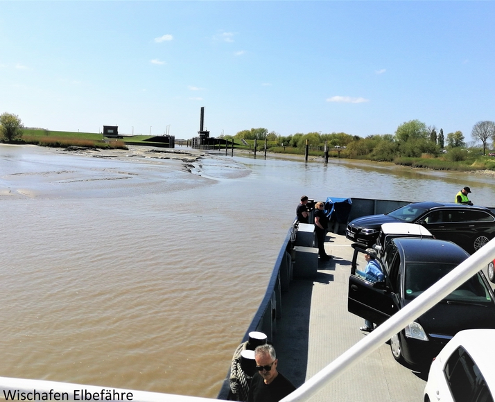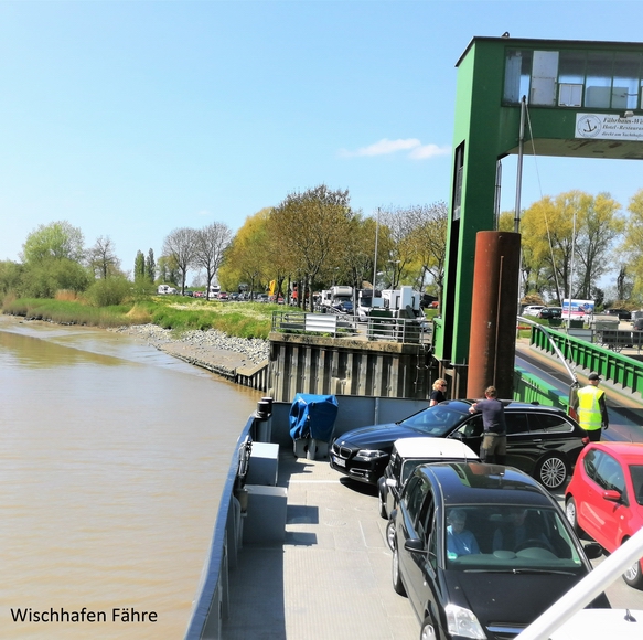 5 km wandern bis zum Bhf.-Nordenham. Per Bus zur Fähre Blexen. Fährfahrt nach