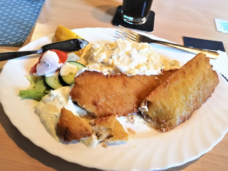 Natürlich gönne ich mir ein Fisch-Mittagessen am Hafen an der Torstraße.