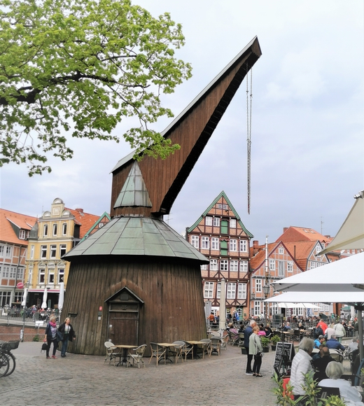 Von meinem Fenster schaue ich auf den Markt +Hafenkran. Da immer noch die Sonne